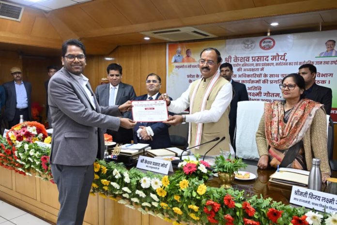 जनपद इटावा के लिए यह अत्यंत गौरव का क्षण है कि राष्ट्रीय ग्रामीण आजीविका मिशन (NRLM) के अंतर्गत माह दिसंबर 2025 में उत्कृष्ट कार्य निष्पादन के लिए जनपद इटावा को प्रदेश स्तर पर तृतीय स्थान प्राप्त हुआ है। इस उल्लेखनीय उपलब्धि के लिए मुख्य विकास अधिकारी इटावा अजय कुमार गौतम को उप मुख्यमंत्री केशव प्रसाद मौर्य के कर-कमलों द्वारा प्रशस्ति पत्र प्रदान कर सम्मानित किया गया।